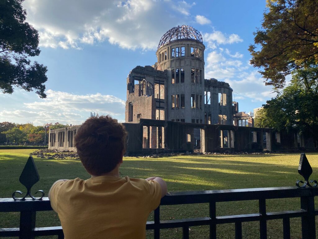 Onze zoon heeft direct een klik met Emmi. Zijn Engels is goed, dus hij stelt veel vragen en vertelt van alles over Nederland. Omdat we er uitgebreid over hebben gepraat kan hij de gebeurtenissen waar Emmi over praat goed plaatsen en is er veel herkenning. We bezoeken de Atomic Bomb Dome en het Peace Memorial Park, waar de verwoesting en de veerkracht van de stad voelbaar zijn.